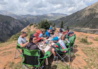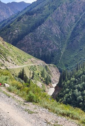 Our final day on the bikes will be mainly uphill. We ride through the beautiful Suusamyr Valley. The valley abounds with stunning panoramas encompassing mountains, verdant forests, glistening lakes, and meandering rivers. This breathtaking locale stands proudly as one of the premier tourist havens in Kyrgyzstan. Visitors flock to indulge in an array of exhilarating activities, including rafting expeditions, horseback rides, heart-pounding paragliding adventures, and even the unique seasonal tradition of partaking in kumis, a detoxifying drink made from mare’s milk.