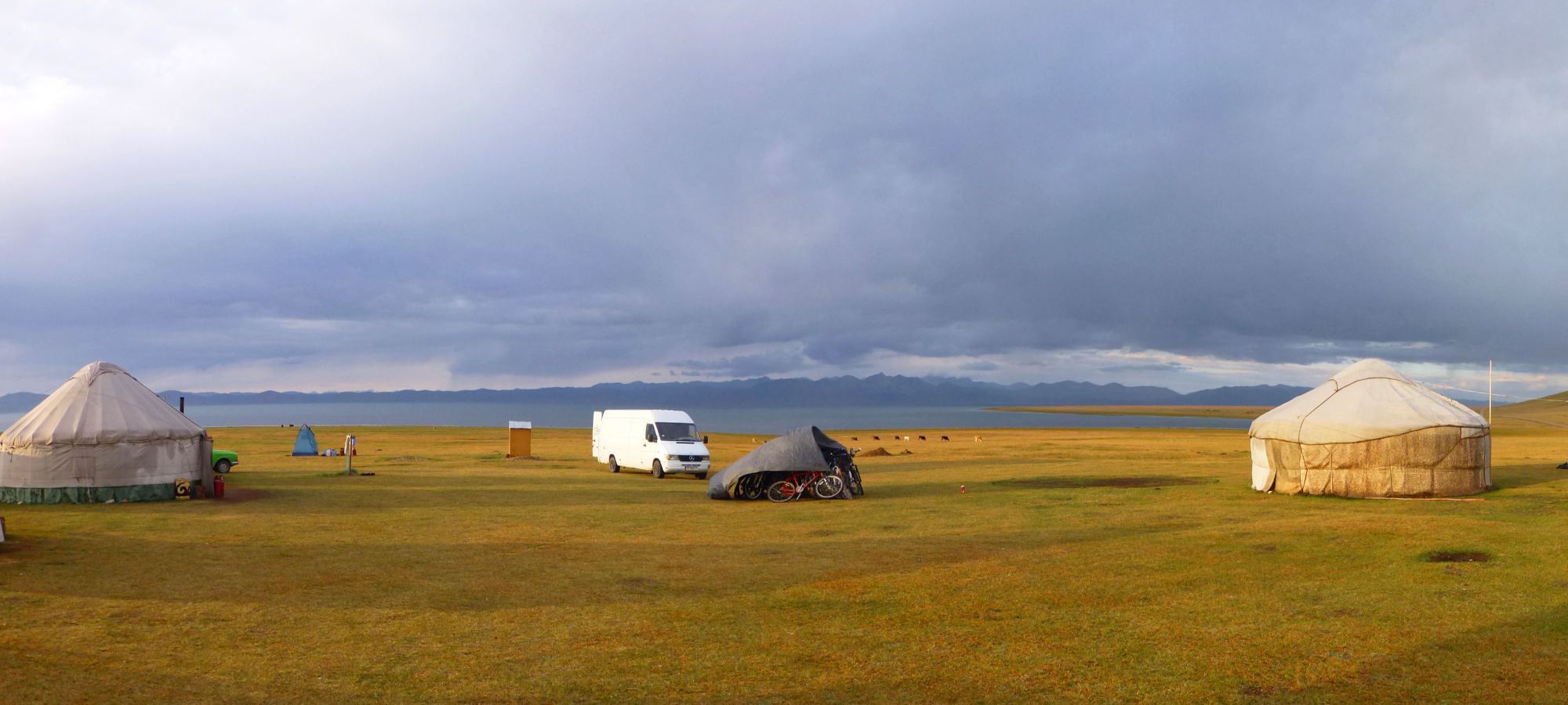 We begin riding today with a challenging uphill cycle along a snaking route to the summit; at over 3346m the peak is higher than any Alpine pass and a great spot for a group photo. We follow a narrow road along the top of the mountain peak which leads us to the most famous place in Kyrgyzstan – Son Kul Lake. This is a wild mountainous area with a large nomadic population.