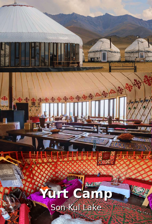 Hotels in Bishkek and Naryn are modern 3–4★ properties offering private bathrooms and the chance to refresh before and after the remote stages. In the mountains, accommodation becomes progressively more traditional. Tented camps offer basic but well-supported nights under vast star-filled skies, while the yurt camp at Son-Kul provides the highlight of the tour — a true nomadic experience surrounded by high pastures and herding families. Guesthouses and homestays in Kochkor, Chaek and Kyzyl-Oi are simple but warm, offering local hospitality and hearty home-cooked meals.