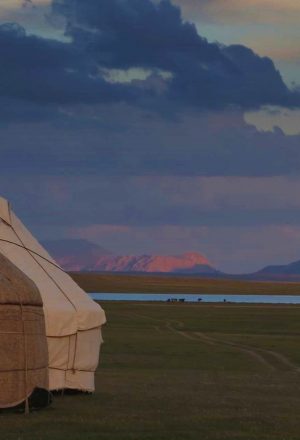 Remote from civilization, Son Kul Lake is a real encounter with unspoiled nature. At the end of the day we arrive at our camp. Tonight we will be staying in Yurts: a genuine Kyrgyz nomadic experience that will take you back in time. Made from felt and wood and held together with wooden sticks and strips of leather, it takes just one hour to collapse or to erect a yurt.