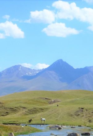 Surrounded by summer pastures and mountains in its remote splendour it is considered an area of outstanding natural beauty. The surrounding area is a treeless plain but hosts a rich variety of fauna and flora from herbs (such as chamomile, sagebrush, lichen, friar’s cap and golden root) many of which are reputed to have healing properties. There is an abundance of flowers in springtime, in particular Edelweiss. As many as 66 different species of waterfowl live on the shores of the lake – about two thirds of all the varieties found in Kyrgyzstan.