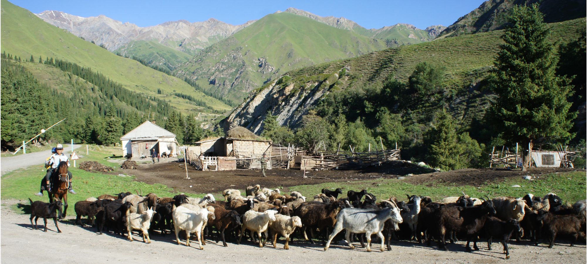 Today, we ride into the remote wilderness of the Tien Shan Mountains. The day begins with a steady incline that continues throughout, offering a solid warm-up for the higher passes to come. Our route winds along rarely-used dirt tracks, through spectacular gorges and past scattered yurts where nomadic herders live much as they have for centuries.