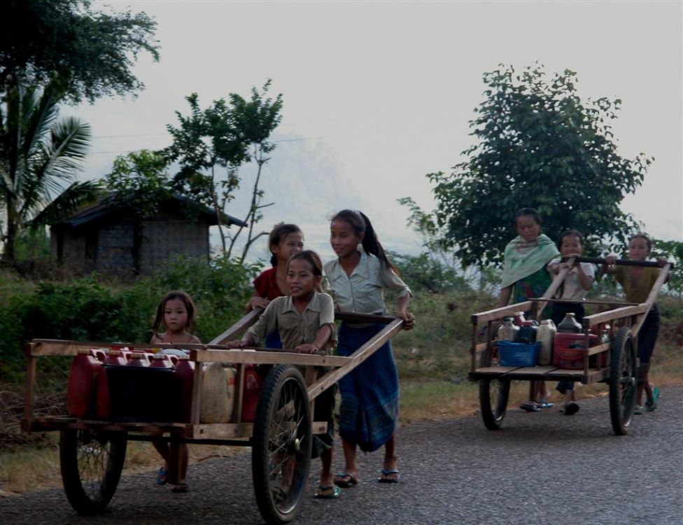 Ban Faen village is home to our guide Khen Phetxayphone, most of the villagers are farmers who work in the surrounding rice fields, it has no running water or electricity, a generator provides 2 hours electricity a night. When redspokes started to work with Khen in 2001, we talked to the Headman and Elders to determine what support the village needed and where our support would have the greatest effect. After some discussion, it was agreed that the 2 main issues facing the village was access to clean drinking water and the school. We decided to start by helping the school. This decision was not unanimous, as there were mixed opinions about the value of education, particularly for girls. Nonetheless, our first donation went towards concreting the school floor.