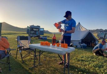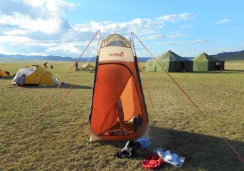 We ride on for another 30 minutes to reach our camp site for our first evening sleeping in a traditional Ger camp complete with dining tent and shower tents. A welcome change after 5 nights of camping.