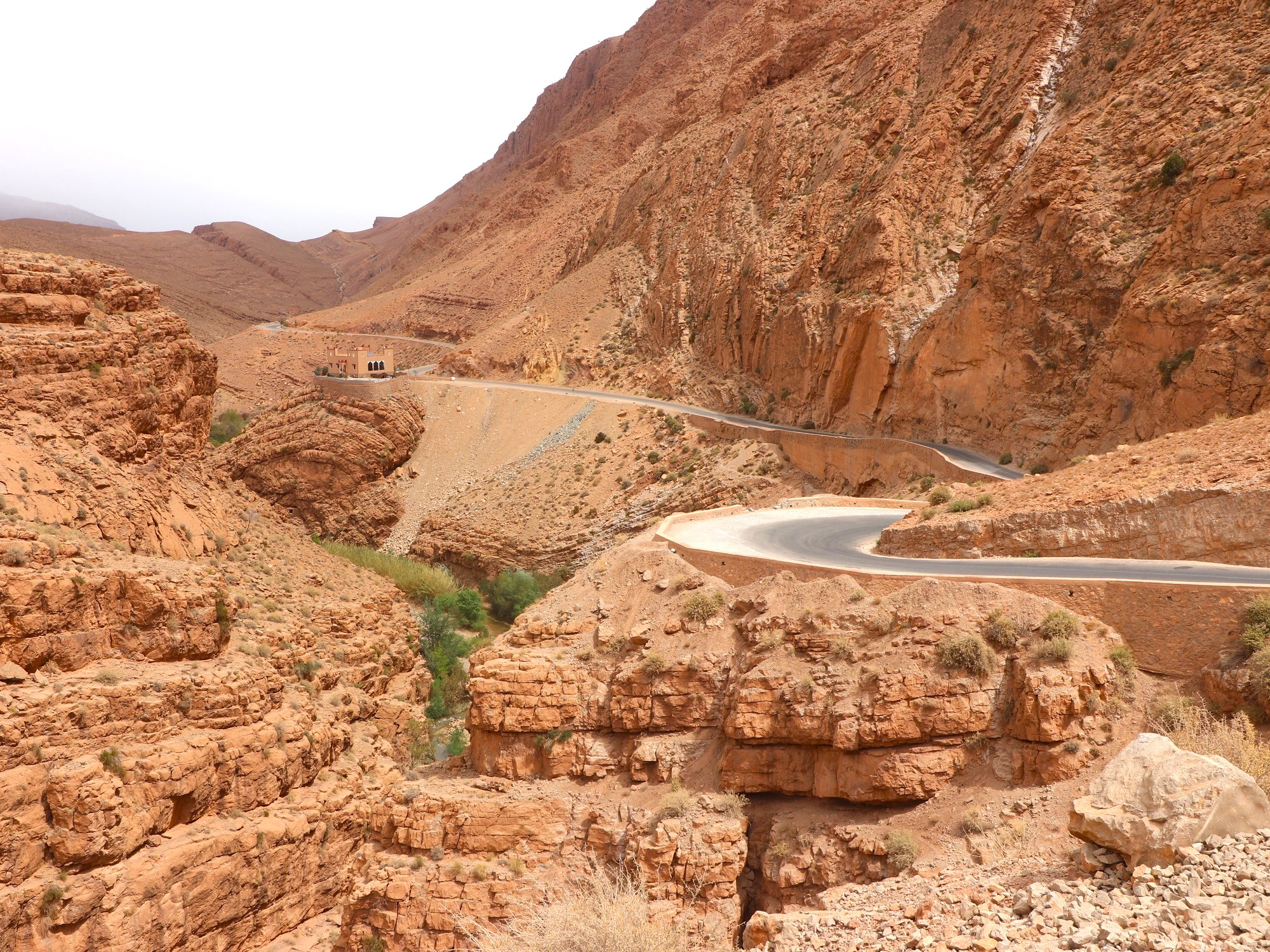 We begin the day riding straight into the heart of the Todra Gorge, one of Morocco’s most striking geological features. With sheer rock walls reaching up to 300 metres on either side, the narrow road winds through this dramatic canyon, offering an unforgettable cycling experience of light, shadow, and towering stone.
