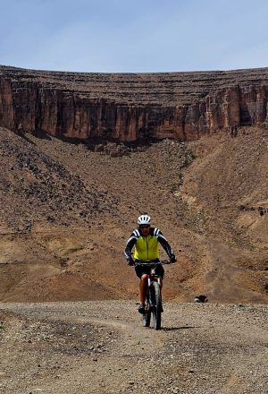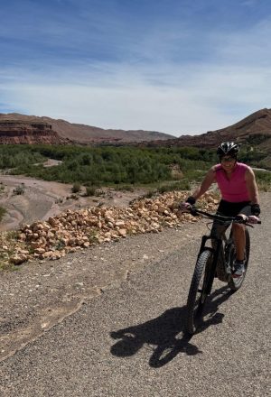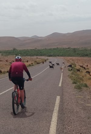 Today’s journey takes us from Msemrir down the famous Dades Gorges, offering an exhilarating experience that showcases stunning natural beauty and the region’s rich geological history. The route features dramatic landscapes with towering cliffs and winding roads. As you pedal through the gorge, you’ll encounter rugged rock formations and terraced fields, providing breathtaking views at every turn. Along the way, you’ll pass through traditional Berber villages, where you can immerse yourself in the vibrant local culture. This remarkable journey promises an unforgettable adventure filled with awe-inspiring scenery.