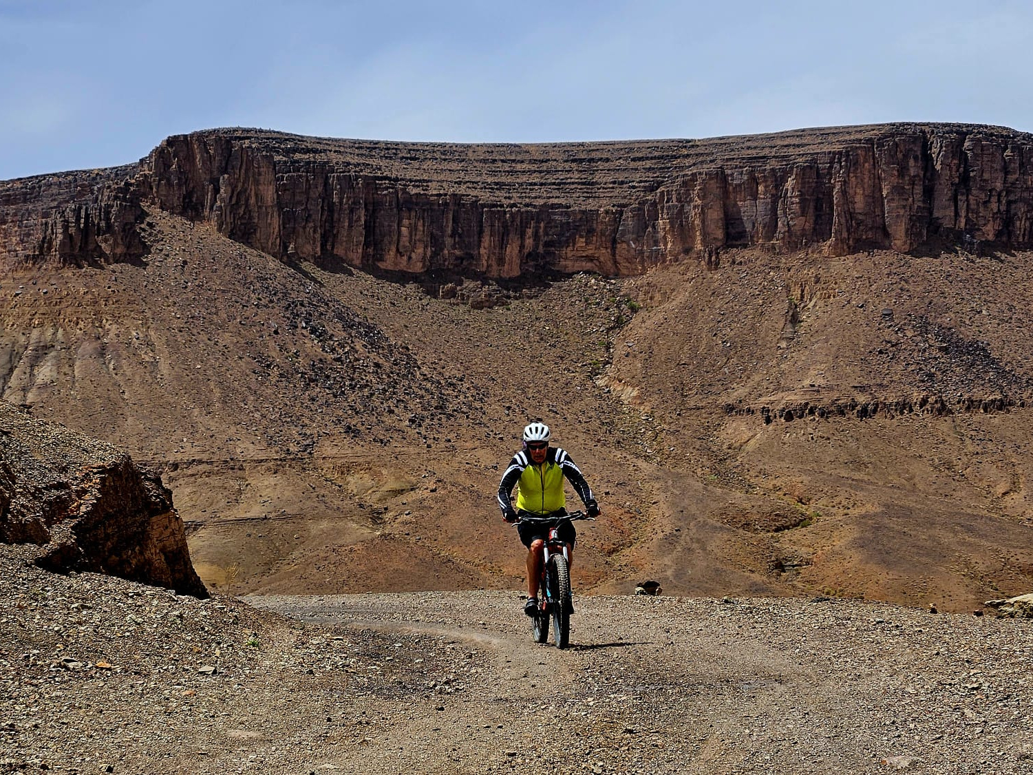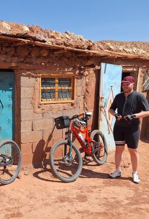We begin with a short 30-minute transfer through the rugged Jbel Saghro Mountains, climbing to an altitude of 2,275 metres. From this scenic high point, we start our ride toward the Todra Gorge. The route takes us through dramatic desert landscapes and remote Berber villages, with sweeping views and thrilling downhill stretches.