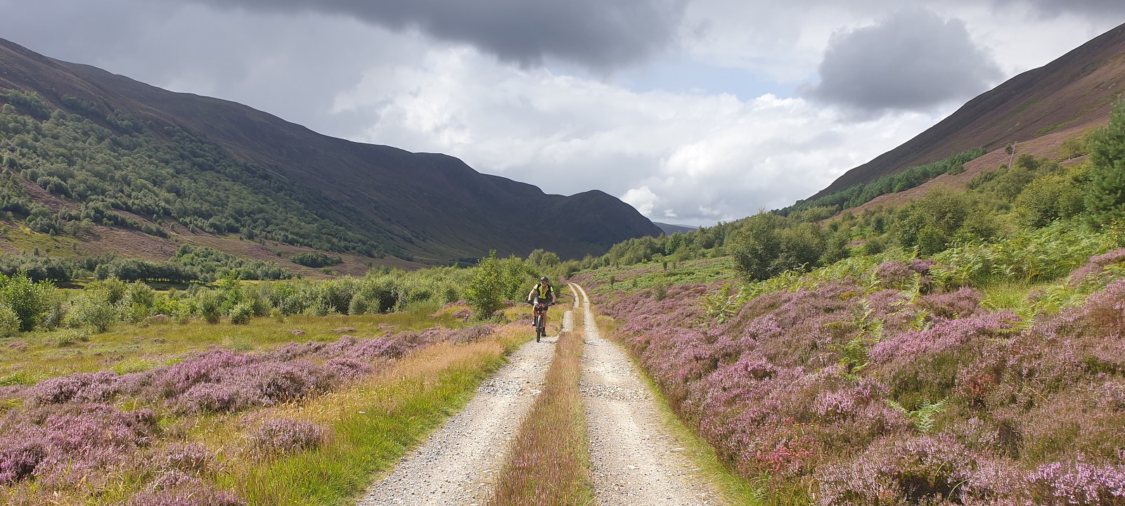 On the fourth day of our cycling journey, we start with a challenging off-road ascent, conquering just over 1,000 feet (325m) across 5 miles (9km) before the terrain levels out onto the scenic and remote Glen Orrin.