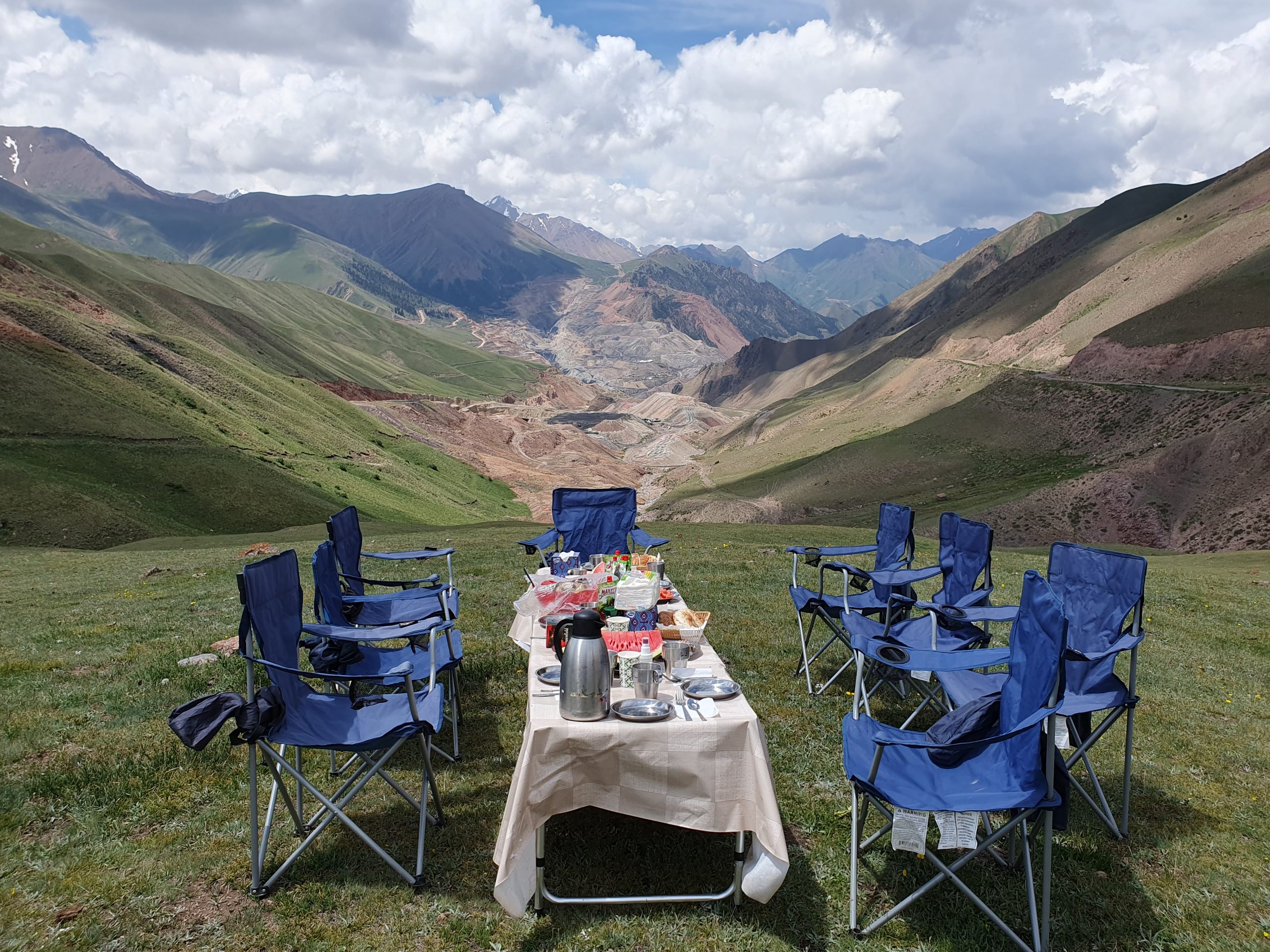 Today we will ascend to the Lyangar pass, cycling a climb of 300 m over 5.5 km. We pause at Lyangar village to enjoy wonderful views of mountains and the valley. Back on the bikes we continue cycling along the upper part of the Aktau Range, passing a disused marble mine. From here we descend cycling down through the valley to reach Maidan village, we’ll be riding alongside a tributary of Maydansay River, enjoying cool breezes. We stay tonight in a riverside camp.