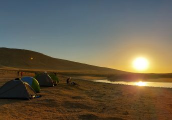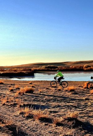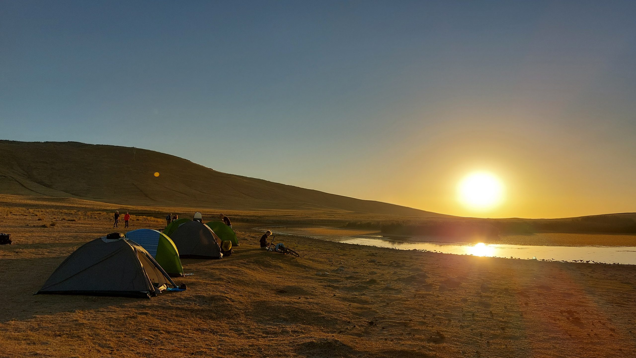 After breakfast we transfer by vehicle to Lake Tuzkan, part of the man-made Aydar-Arnasay system of brackish water lakes, which covers an area of 4,000 km². The lakes are the unintentional by-product of Soviet planning. The area is sparsely populated, only inhabited by a few fishermen and shepherds. After lunch we begin cycling along the shore on good dirt road following the Pistalitau ridge. Over the pass we continue on to Ortacheku Rocks. We can take a walk this evening to the peak to enjoy views of the mountains. If the weather is fine you will witness a spectacular sight from our campsite, as the Ortacheku rocks glow to a fiery orange in the sun set.