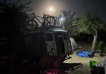 We stop at beautiful Fazilman Mountain Lake (1640m) for lunch. In the summer months locals move their yurts near to the lake to grow vegetables on the fertile plateau around the water. This afternoon we continue downhill to Aktash village in the foothills of Tien Shan. The area enjoys a mild climate and lush vegetation with low dome shaped trees resembling a primeval forest. At the centre of the village are the ruins of an ancient city. The area Aktash, meaning ‘white city’, was once mined for the characteristic white rock. We camp tonight near Aktash village.