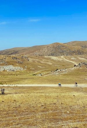 Today, our cycling journey takes us across the scenic Nuratau Ridge, winding through charming countryside and mountain villages adorned with traditional stone houses. We begin our ride with a steady 5km climb, circling around the striking Ortacheku Rocks before descending into the welcoming village of Yangikishlak. From there, we continue on a challenging series of climbs spanning the next 20km, leading us to a much-needed lunch stop.